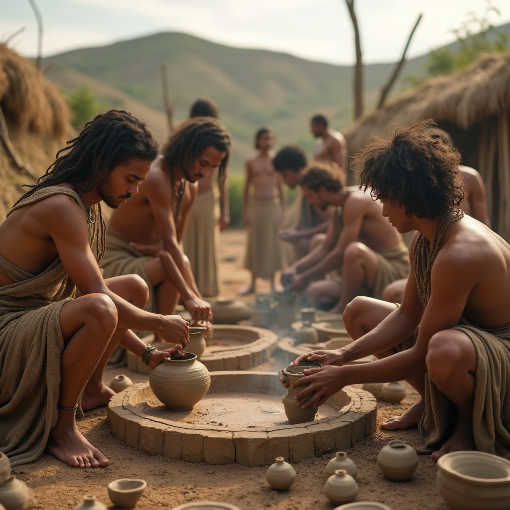 Pottery making is considered one of the oldest crafts in human history and developed alongside the transition of humans to a settled lifestyle. The earliest examples of pottery date back to the Neolithic Age, around 10,000 BCE. During this period, with the advent of agriculture and animal husbandry, human communities required longer-term food storage, leading to the production of fired clay vessels. The majority of the earliest pottery pieces were handmade and shaped using simple techniques. Initially, people molded a mixture of clay and mud with their hands to create vessels, which were then sun-dried or fired in open flames to harden. The wall thickness and shapes of these early ceramics varied across regions, yet the fundamental production principles remained similar.