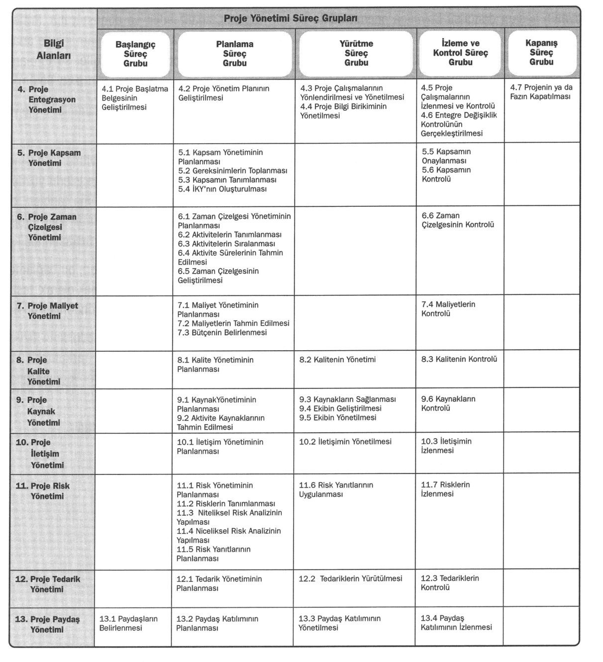 PMBOK 7th Edition Guide Process Groups and Knowledge Areas Table (Project Management Institute, PMBOK® Guide, 7th edition, Table 1.4)