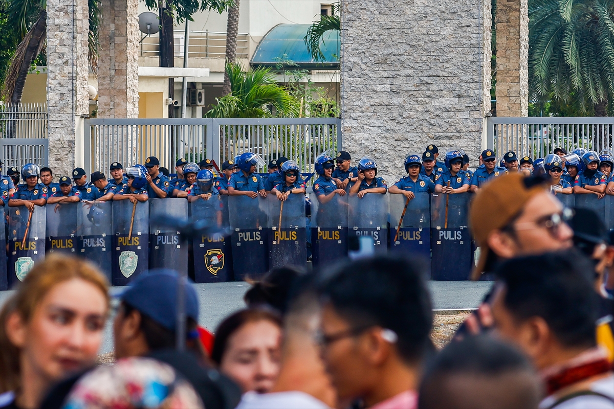 Supporters and Philippine National Police protest around Villamor Air Base where former Philippines President Rodrigo Duterte is being held, March 11, 2025 - Anadolu Agency