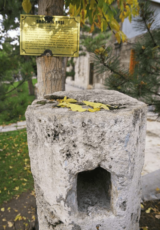 Charity stones are typically stone structures, approximately one to two meters in height, shaped like column, made from marble or granite. A hollow compartment at the top holds cash donations. Sometimes, special compartments or similar spaces were provided alongside the stones for in-kind contributions. Most individuals in need took only the amount of money they required from the stone and refrained from taking more. This reflects the deeply rooted Ottoman values of contentment and generosity.
