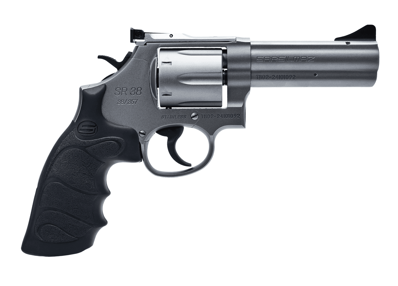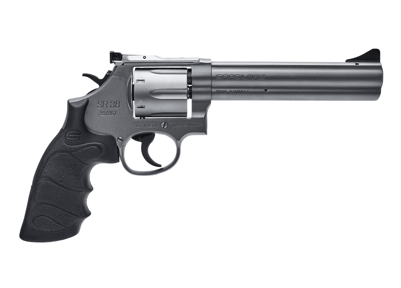 The Sarsılmaz SR Series consists of models produced by Sarsılmaz in the revolver category. The series includes firearms chambered for .38 SPC and .357 MAG ammunition. The frames, barrels, and cylinders of the models are manufactured from alloy forged steel and are available in stainless steel or gray finish options. The safety system features a hammer safety, and both models are equipped with a six-round cylinder. A double-action trigger mechanism is standard across the series. The series includes two variants: the SR 38 with a 4 inch barrel and the SR 38 with a 6 inch barrel.