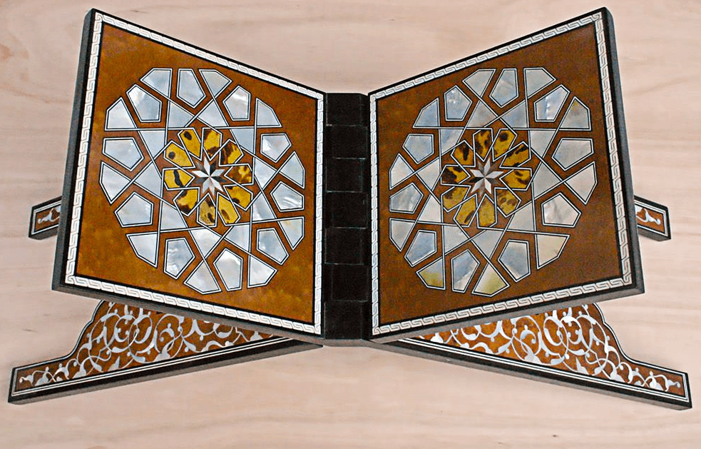 Sedefkârlık is primarily created by inlaying mother-of-pearl, abalone, ivory, bone, brass, or silver wires into recesses carved into wood. This technique has been used throughout history for both functional and aesthetic purposes, adorning items such as furniture, chests, mirrors, lecterns, door panels, pulpits, and Qur’an cases.