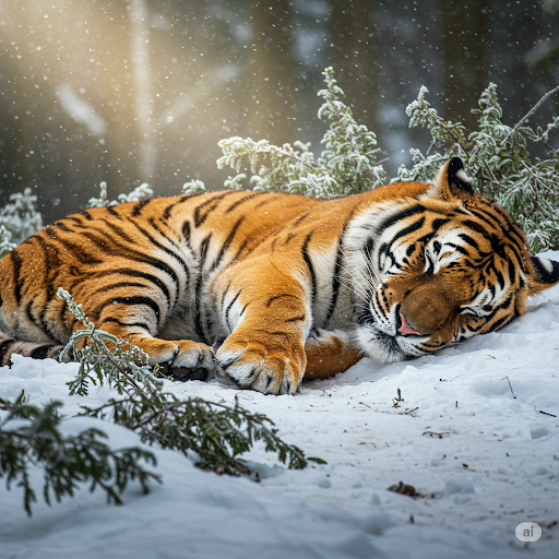 A Sleeping Siberian Tiger (Generated by Artificial Intelligence)