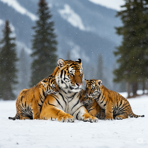 Siberian Tiger Family (Generated by Artificial Intelligence)