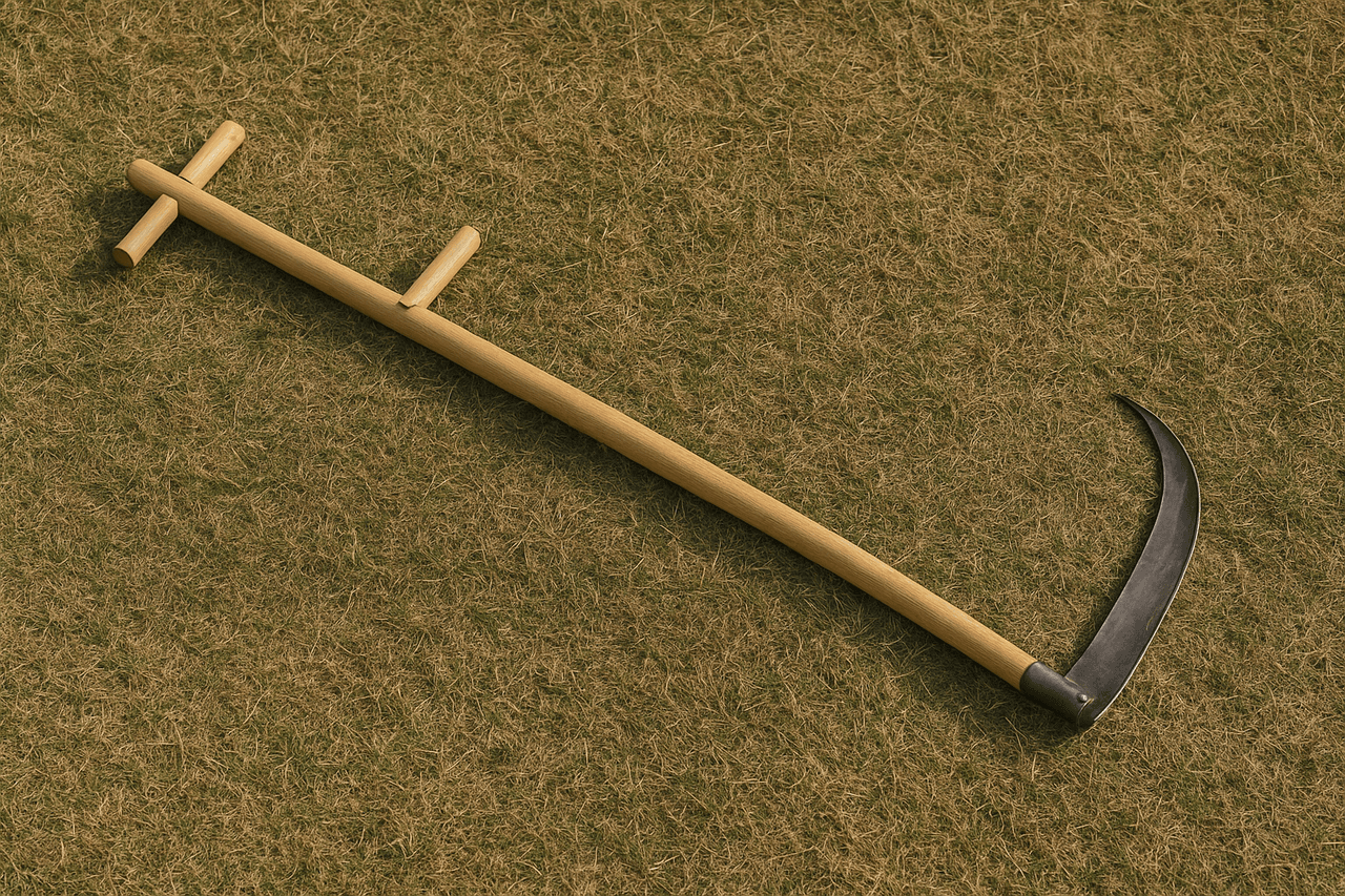 Tırpan; a farming and landscaping tool originally operated by hand for cutting grass, cereals, and similar crops, later developed into motorized and battery-powered variants.