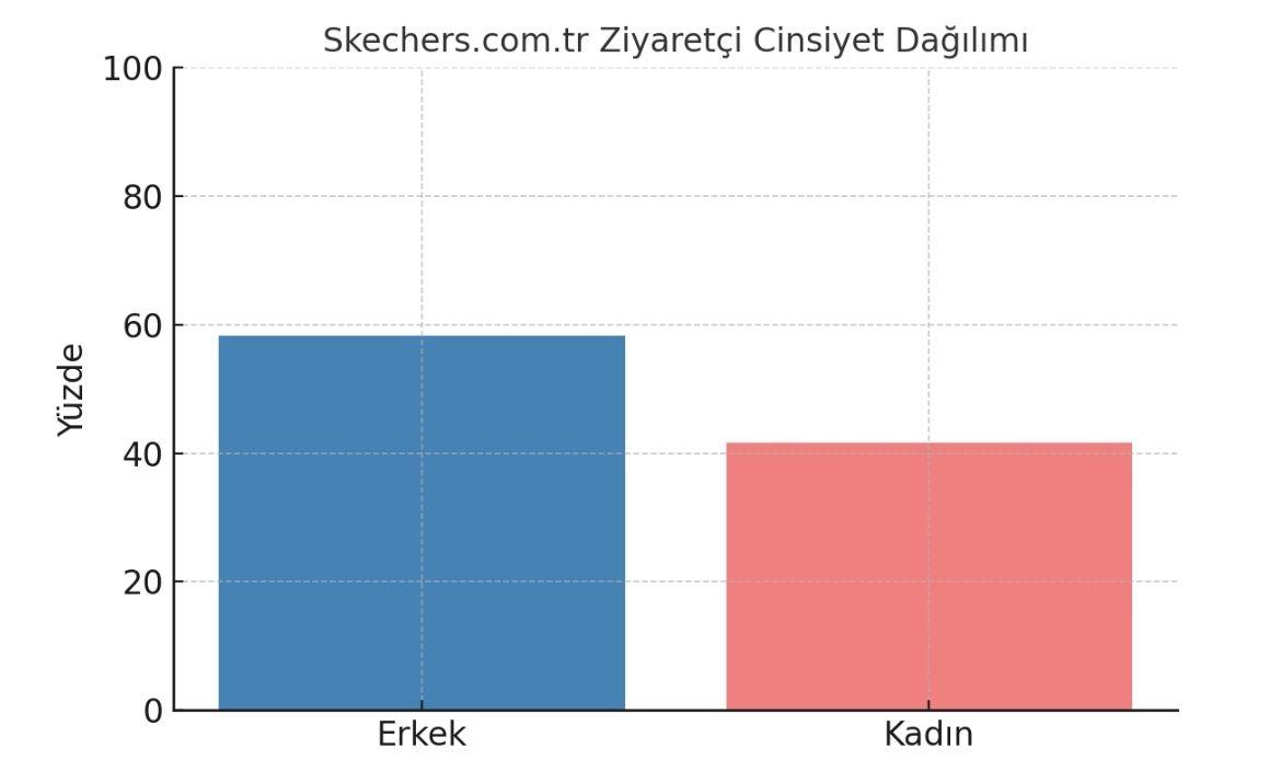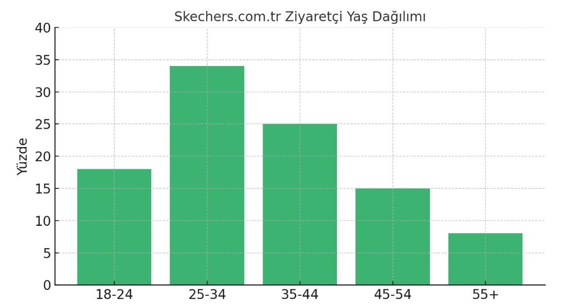 According to February 2025 data from Skechers Türkiye’s official website skechers.com.tr, the largest age group of visitors is 25–34 years. These figures indicate that the brand is more preferred among young adult men. Additionally, website visitors show interest in fashion and apparel, demonstrating alignment between Skechers’ lifestyle-oriented products and its target audience.