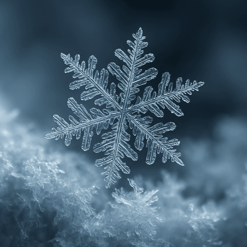 Once crystal growth is complete, the arms of the crystal develop highly complex structures at the microscopic level. Each arm is sensitive to small temperature fluctuations in the atmosphere, making every crystal unique. This uniqueness forms the scientific basis for the expression “no two snowflakes are alike.” In fact, this phrase reveals how sensitive and dynamic the crystal growth process truly is.