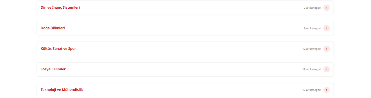 Another major group of the platform, the Social Sciences category, includes fields such as History, Philosophy, Psychology, Economics, Law, Education, and International Relations. The Culture, Art, and Sports category focuses on cultural production and experiences such as music, architecture, digital arts, gastronomy, cinema, and tourism, while the Technology and Engineering category enables content production on topics reflecting the evolving technological landscape, including software, artificial intelligence, electrical and electronics, environmental engineering, and defense industry. This diversity demonstrates that KÜRE is not merely an information source but a multidisciplinary digital knowledge universe.