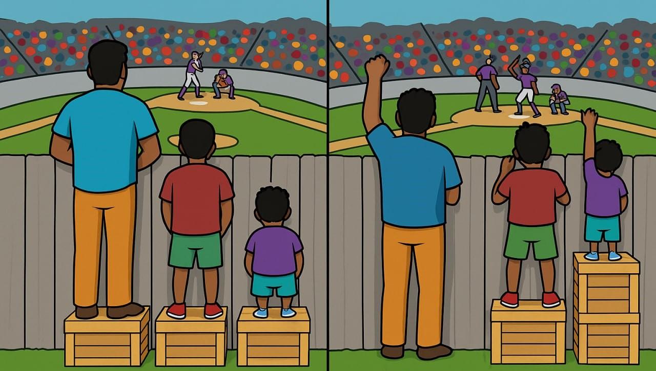An image that represents the difference between justice and equality. (created by AI)
