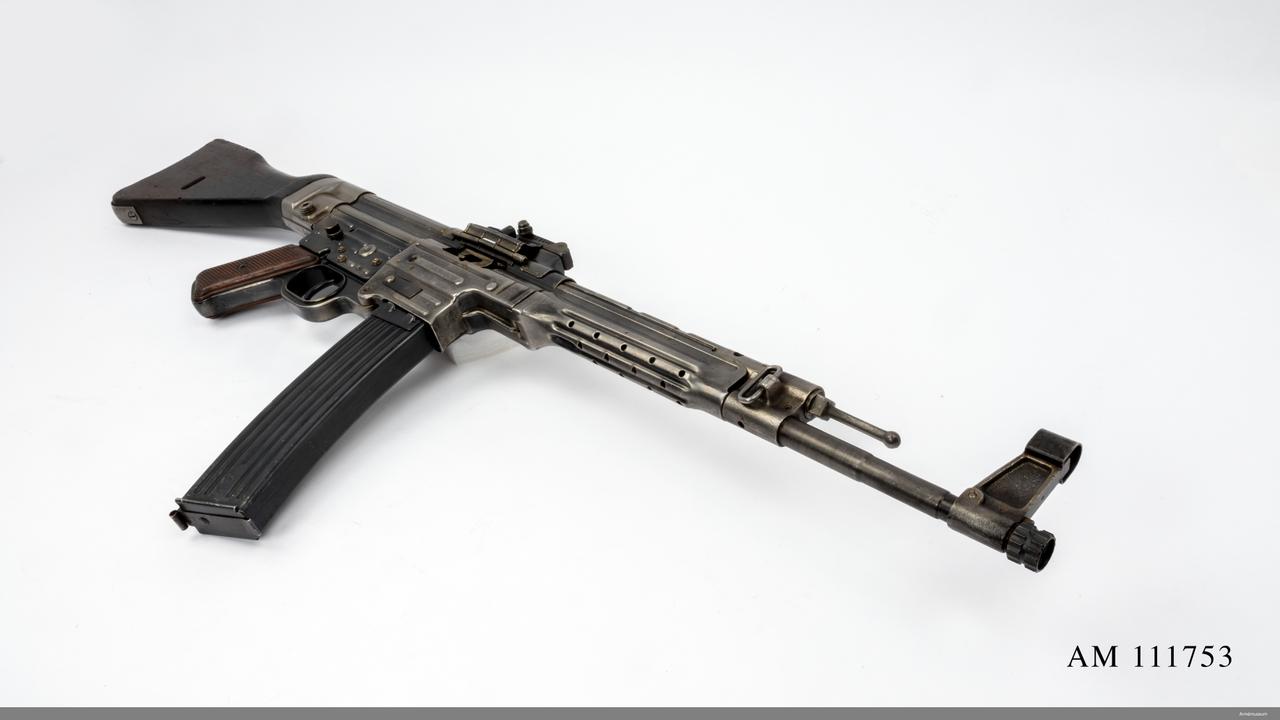 The StG 44 is a gas-operated, long-stroke piston, rotating bolt firearm. It fires the 7.92×33 mm Kurz cartridge and, thanks to its selective-fire system, can be fired in semi-automatic or fully automatic modes. The receiver is stamped from steel to reduce manufacturing costs, while the stock is made of wood.