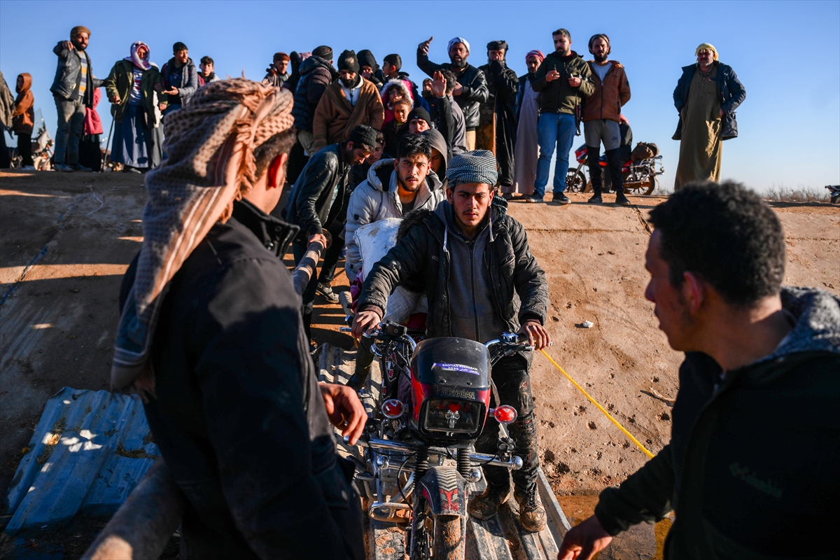 Suriye’nin Deyr Hafir-Meskene hattında siviller güvenli tahliye için bölgeden çıkmaya çalışıyor, 15 Ocak 2026 - (Anadolu Ajansı)