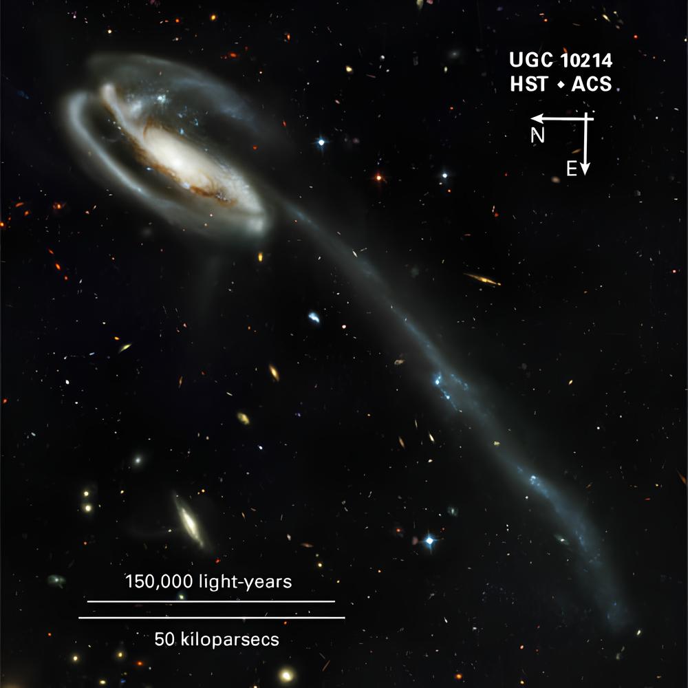 UGC 10214 was first identified as part of the UGC (Uppsala General Catalogue of Galaxies). However, it gained widespread attention following detailed observations by the Hubble Space Telescope (HST) in 2002. High-resolution images taken with Hubble’s Advanced Camera for Surveys (ACS) revealed the galaxy’s morphological structure in great detail.