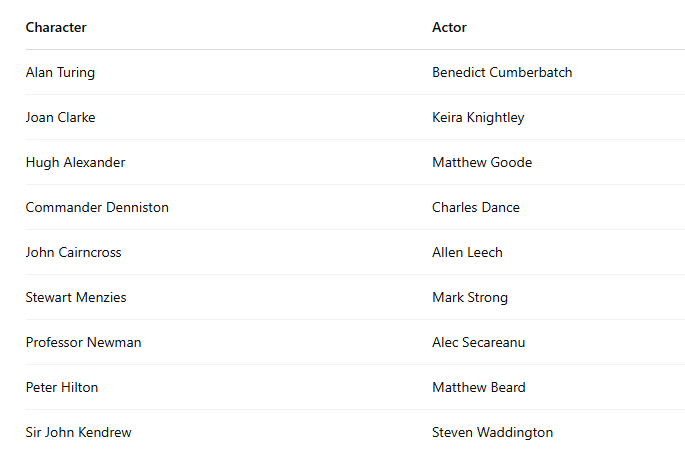 - Best Actor: Benedict Cumberbatch was nominated for Best Actor for his portrayal of Alan Turing.