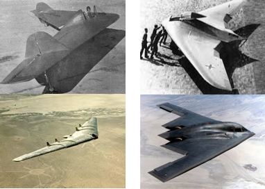 THK-13 Glider (top left), Horten Ho 229 (top right) [14], Northrop YB-49 (bottom left), Northrop Grumman B-2 (bottom right)(MMO)
