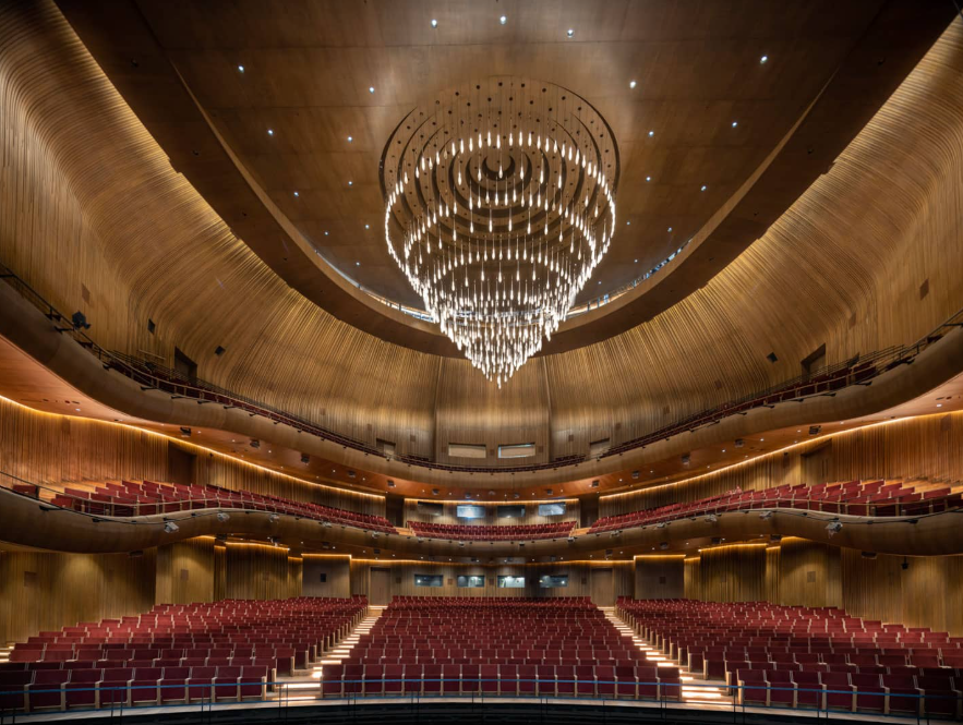The interior structure of the hall has been planned in a horseshoe shape, based on physical, technical, and acoustic analyses. This form was preferred, especially in terms of natural acoustic distribution and reverberation time control. The venue has been designed to meet acoustic parameters such as reverberation time and sound clarity, which are sought after in international opera houses.