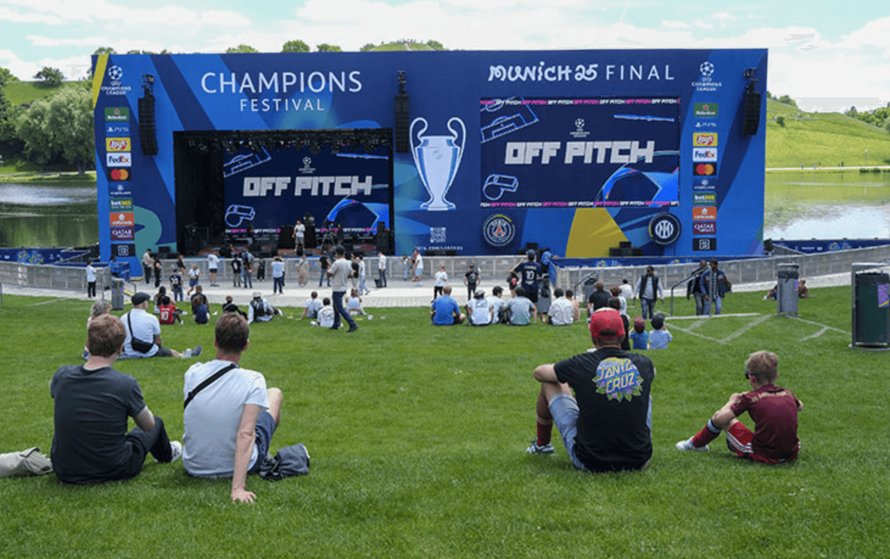 Before the final, UEFA organized the traditional “Champions Festival” in Munich. The festival’s central venue was designated as the Munich Olympic Park. Starting on 30 May, a wide range of football and music-related events took place. Fans participated in skill competitions with footballs, attended concerts, and took commemorative photographs with a symbolic replica of the Champions League trophy.
