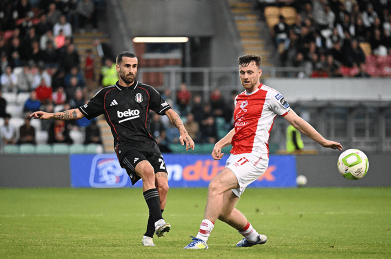 St. Patrick’s Athletic started the return leg with an unexpected burst of energy. In the 3rd minute, a cross into the penalty area led to a handball by Paulista, resulting in a penalty. Conor Carty converted the spot-kick with a low shot to the right of goalkeeper Mert Günok, giving his team a 1–0 lead. Despite Beşiktaş’s attempts to regain control, St. Patrick’s doubled their advantage in the 34th minute. R. McLaughlin, on the right flank, cut inside and fired a powerful shot from a tight angle into the net.