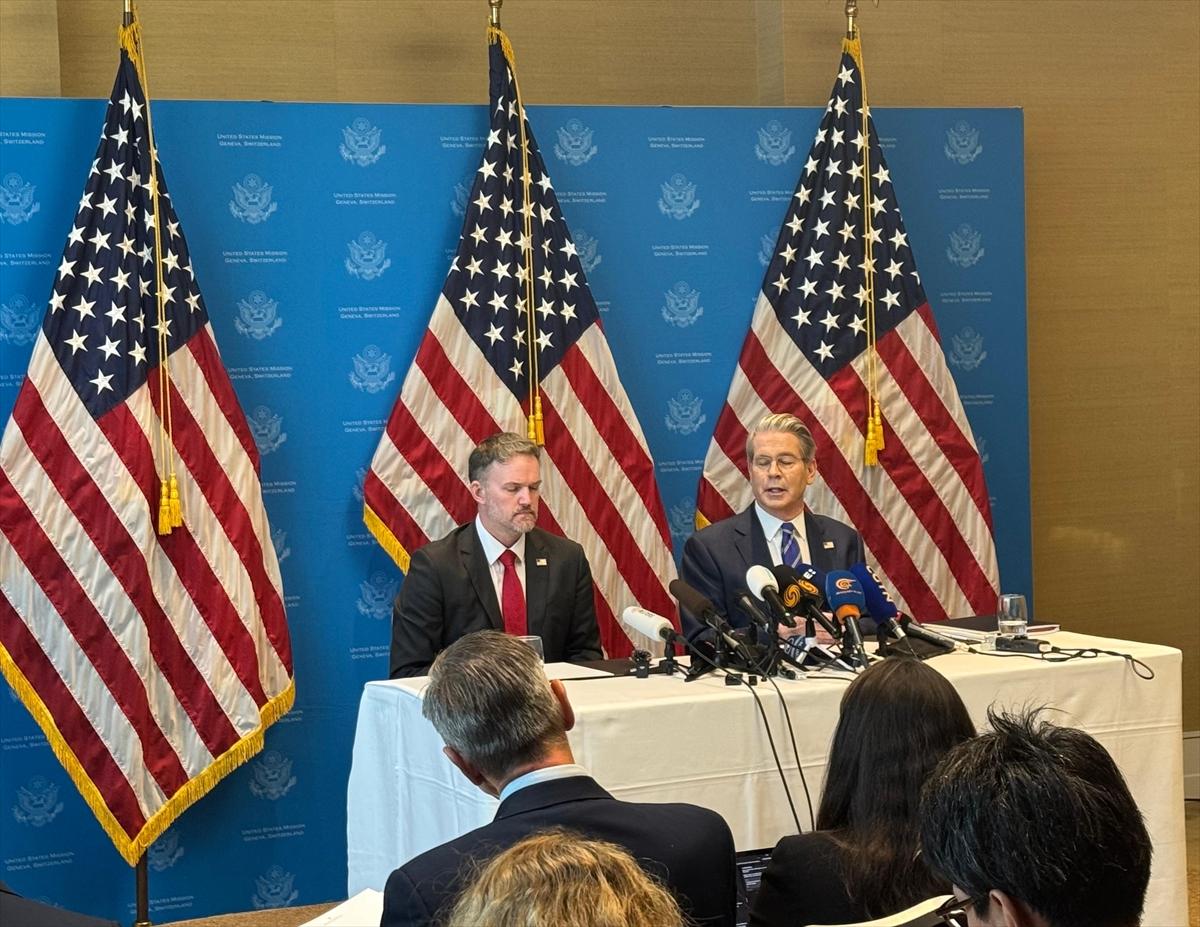 U.S. Treasury Secretary Scott Bessent (right) and U.S. Trade Representative Jamieson Greer (left) at the press conference following the Geneva negotiations, May 12, 2025 – Anadolu Agency.