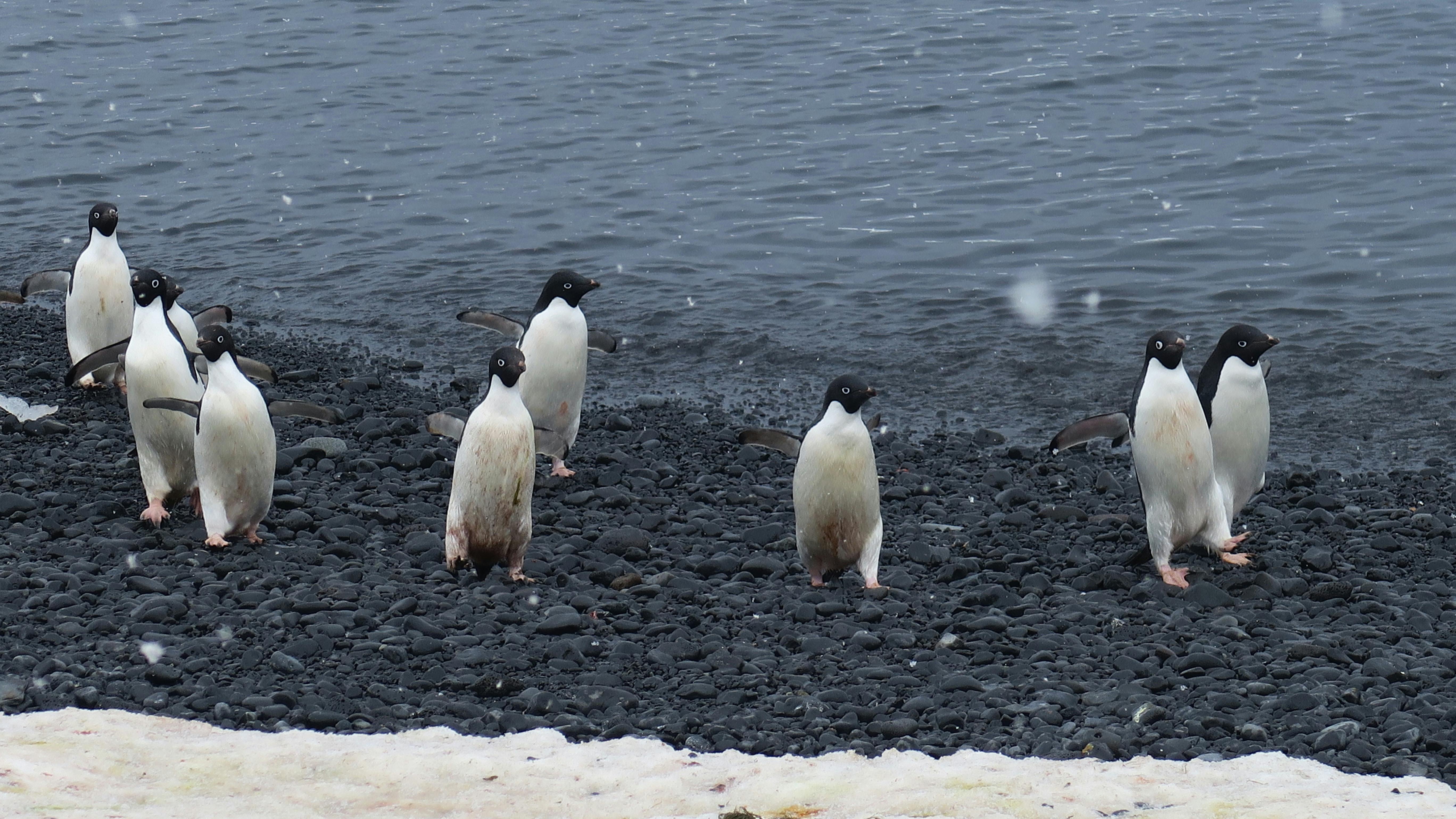 Adelie pengueni (Pygoscelis adeliae), penguengiller ailesindendir. Soğuk ve buzlu kıyıların sevimli ve çevik kuşlarındandır. Onları diğer penguenlerden ayıran en önemli özelliklerinden biri, gözlerinin çevresindeki belirgin beyaz halkadır. Ayrıca kısa ve güçlü yüzgeç benzeri kanatlarını yüzmede ve buz üzerinde hızlı hareket etmeye uyum sağlamak için kullanırlar.