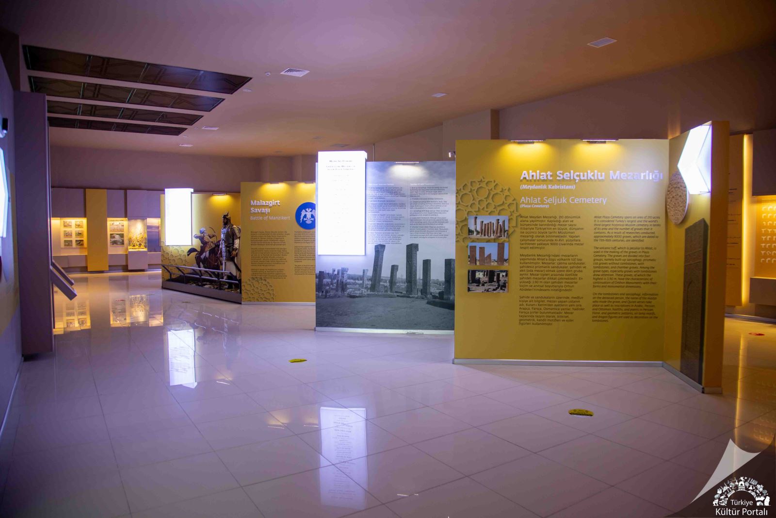 - Kentsel Bellek Salonu: Burada, Ahlat'ta yaşamış devletlerle ilgili kısa bilgiler ve panolar bulunur. Ayrıca, 1071 yılındaki önemli Malazgirt Savaşı ile ilgili görseller ve bilgilere de ulaşabilirsin. Hatta, bu savaşta önemli rol oynayan Sultan Alparslan'ın gerçeğe çok benzeyen heykeli de bu salonda yer alır.