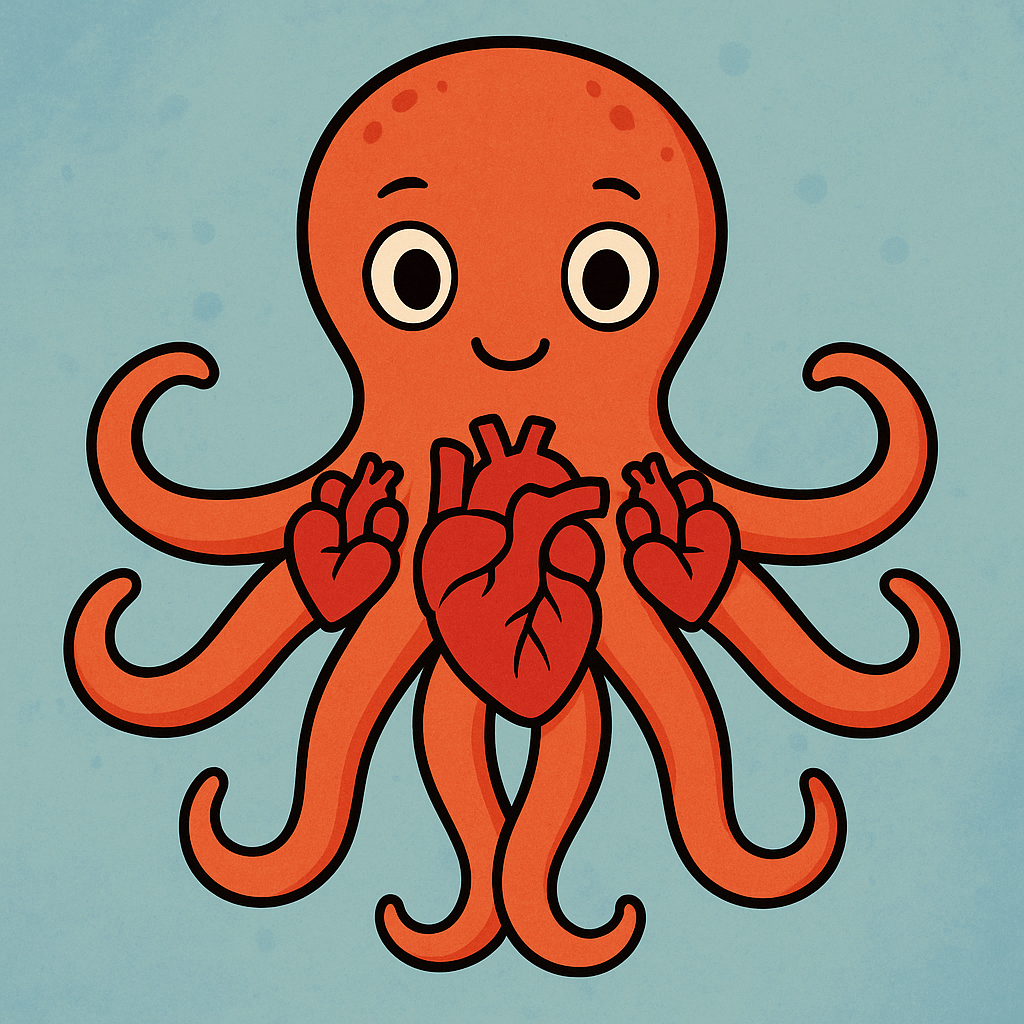 Ahtapotun Kalplerini Gösteren Görsel (Yapay Zeka ile Oluşturulmuştur.)