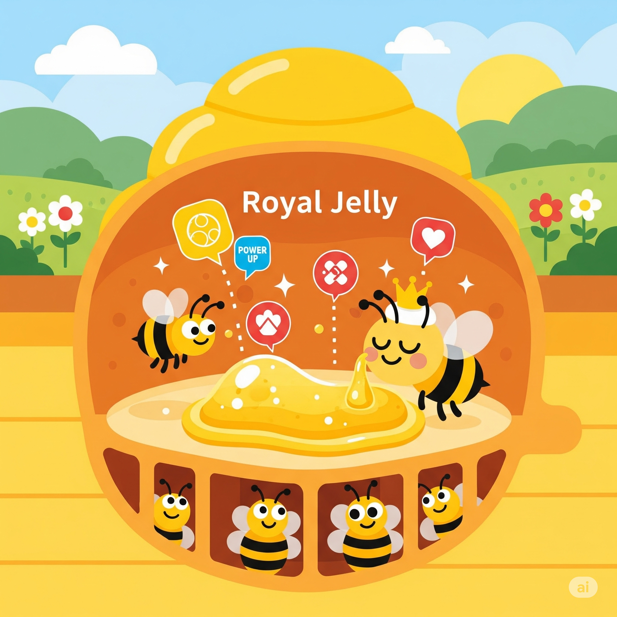 Arı sütü, kraliçe arının güçlü, uzun ömürlü ve yumurtlama yeteneğine sahip olmasını sağlar. Kraliçe arı sadece arı sütü ile beslenir! Bu nedenle, arı sütü arılar için çok değerlidir.