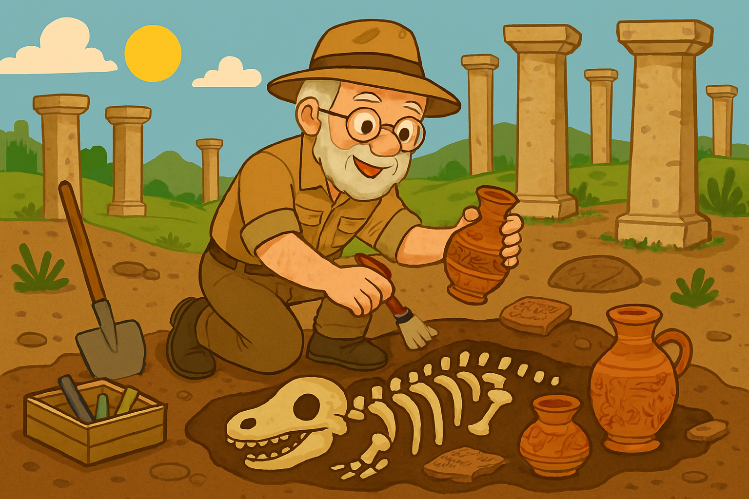 Hiç eski bir eşya bulup “Bu kimindi? Ne için kullanılmış?” diye merak ettiniz mi? İşte arkeoloji, bu soruları cevaplayan bir bilim dalı! Arkeoloji, insanların geçmişte nasıl yaşadığını, neler yaptığını ve hangi eşyaları kullandığını, bıraktıkları izler ve eşyalar üzerinden öğrenir. Şimdi gelin, bu heyecan verici bilimi birlikte keşfedelim!