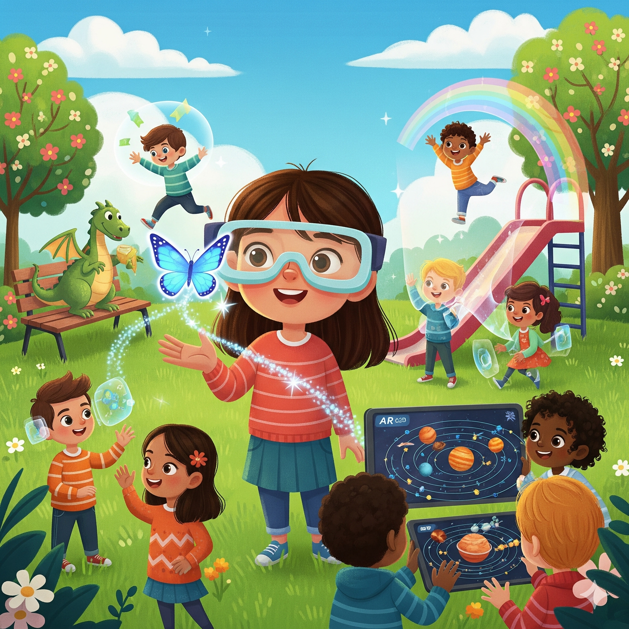 Bu teknoloji, gerçek dünyayı tamamen kapatmaz, sadece üstüne eklemeler yapar. Örneğin, bir müzede heykellere bakarken, tabletinde o heykelin eski zamanlarda nasıl göründüğünü izleyebilirsin. Ya da bir oyunda, odanın içinde sanal hazineler arayabilirsin!