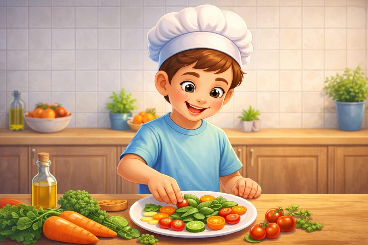 Çocuk bir aşçı (Yapay zeka ile oluşturulmuştur.)