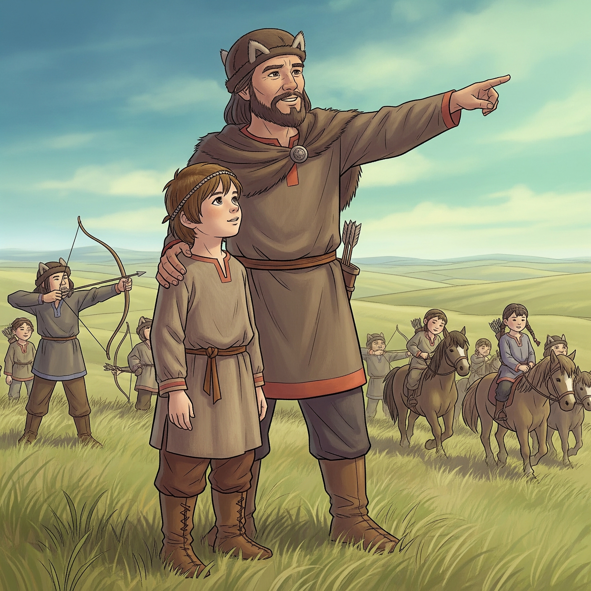 Hunlar için hayat, at üzerinde geçerdi. Çocuklar çok küçük yaşta, neredeyse yürümeye başlar başlamaz ata binmeyi ve ok atmayı öğrenirdi. Düşünsene, 3-4 yaşındaki bir çocuğun minik hayvanları avlayarak okçuluk çalıştığını! Attila da işte böyle bir ortamda, cesur ve yetenekli bir savaşçı olarak yetişti.