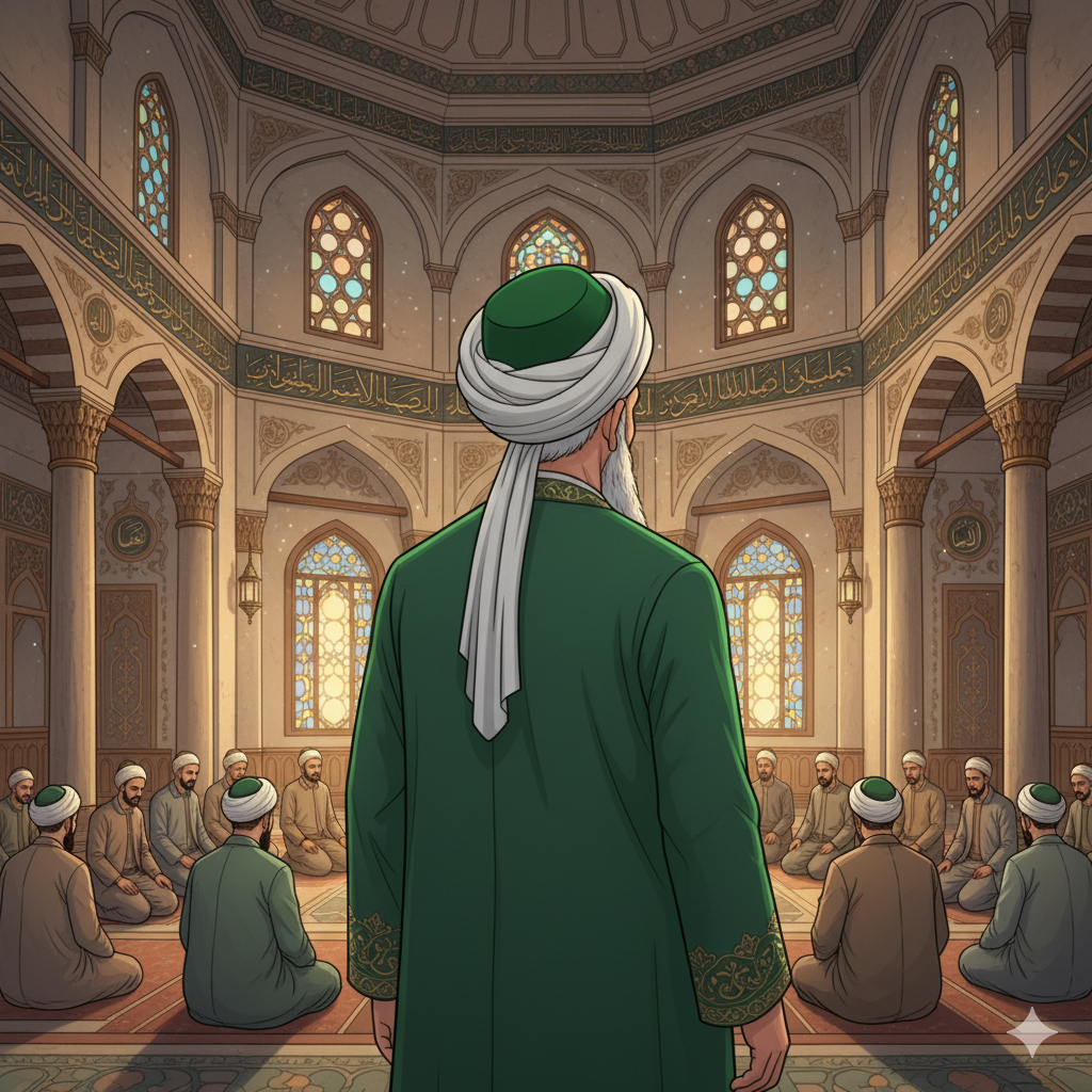Aziz Mahmud Hüdâyî, Üsküdar’daki dergâhında, temsili (Görsel yapay zekâ ile oluşturulmuştur).