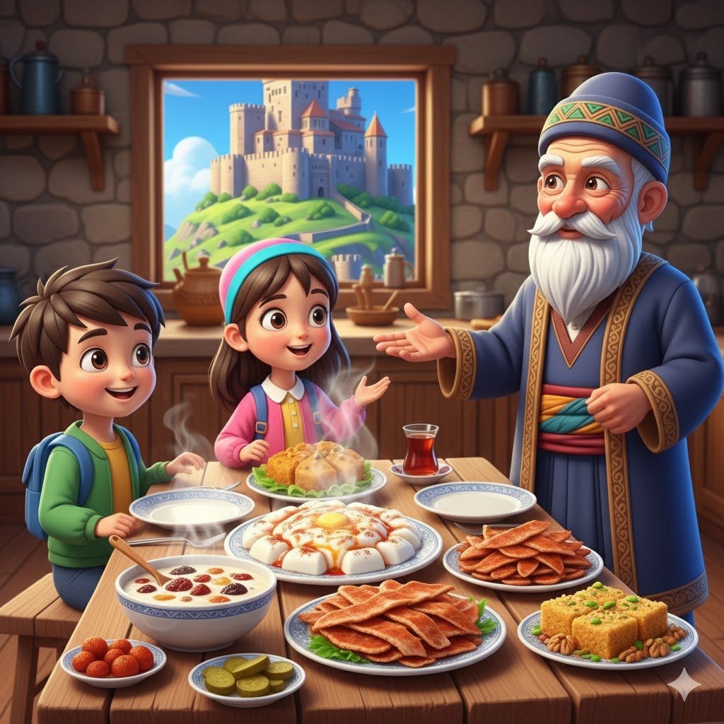 Bayburt ilinin meşhur yemeklerini temsil eden görsel (Yapay zeka ile oluşturulmuştur )