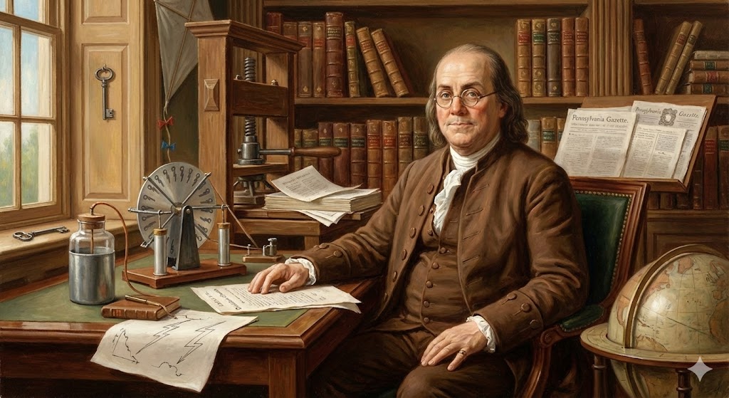 Benjamin Franklin, 18. yüzyılda bilim, yayıncılık ve siyaset alanlarında faaliyet göstermiş Amerikalı bir devlet adamıdır. Amerika Birleşik Devletleri’nin kurucularından (Kurucu Babalar) biri olarak kabul edilir. Elektrik üzerine yaptığı çalışmalar ve diplomatik görevleri ile tanınır.