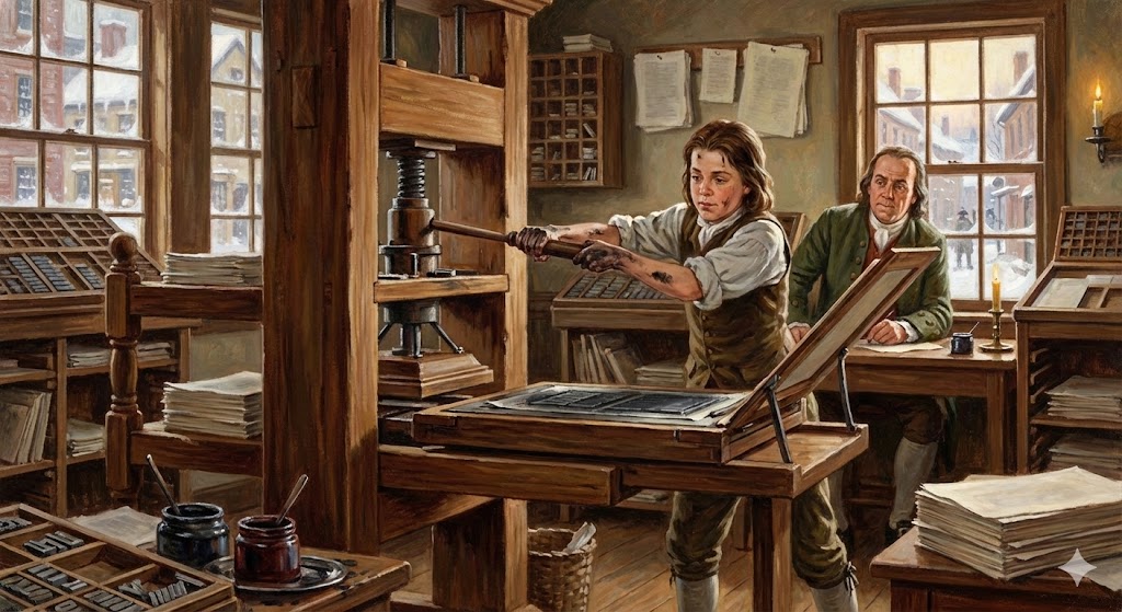 Philadelphia’da matbaacılık mesleğini sürdüren Franklin, 1729 yılında "The Pennsylvania Gazette" gazetesini devraldı ve yayınlamaya başladı. Gazete, kolonilerde geniş bir okuyucu kitlesine ulaştı.