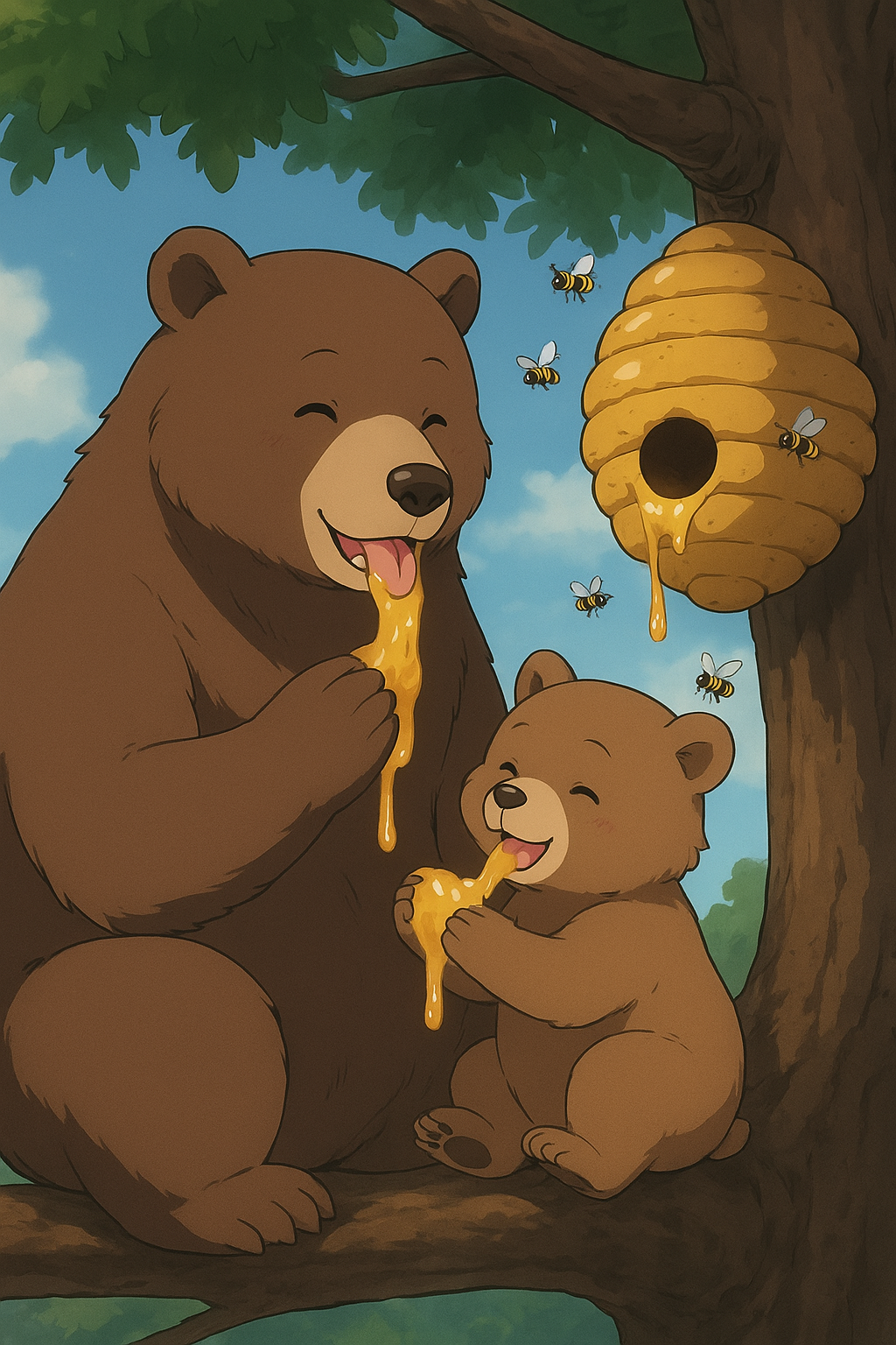 Bal Yiyen Anne ve Yavru Bozayı (Yapay zeka ile oluşturulmuştur.)
