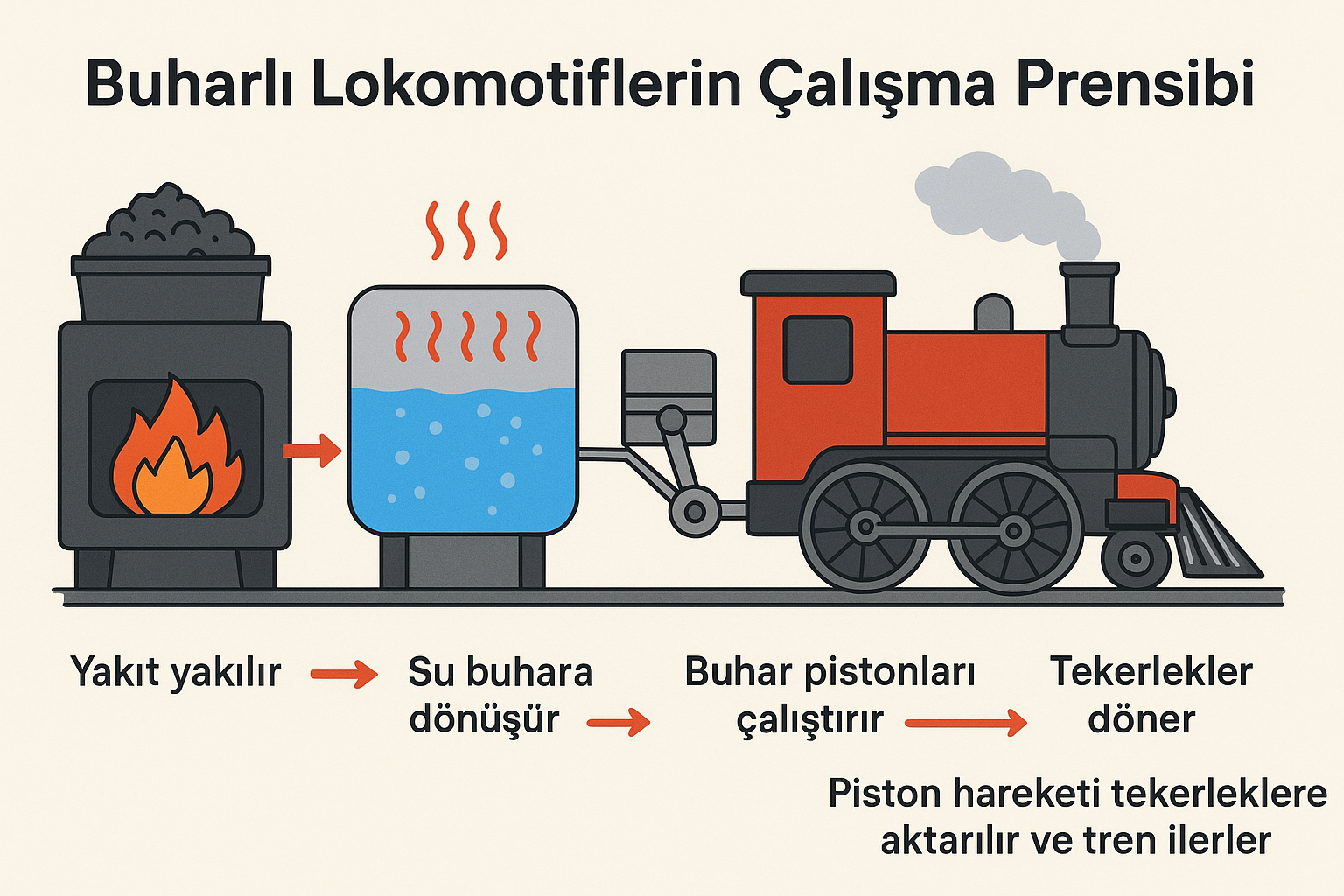 Buharlı Lokomotiflerin Çalışma Prensipleri (Yapay Zeka İle Oluşturulmuştur)