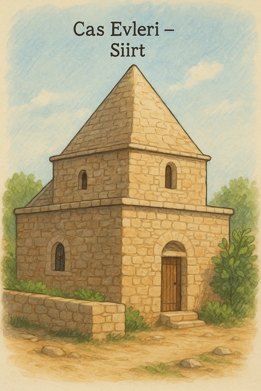 Cas Evleri, Siirt’in kültürel mirasını yansıtan özel yapılardır. Bu evler, bölgenin doğal malzemesi olan cas harcı ile sıvanır ve bu yapı stili, hem çevresel hem de iklimsel uyumu göz önünde bulundurarak geliştirilmiştir. Cas harcı, jips taşının fırınlanıp öğütülmesiyle elde edilen kaba alçıdır.