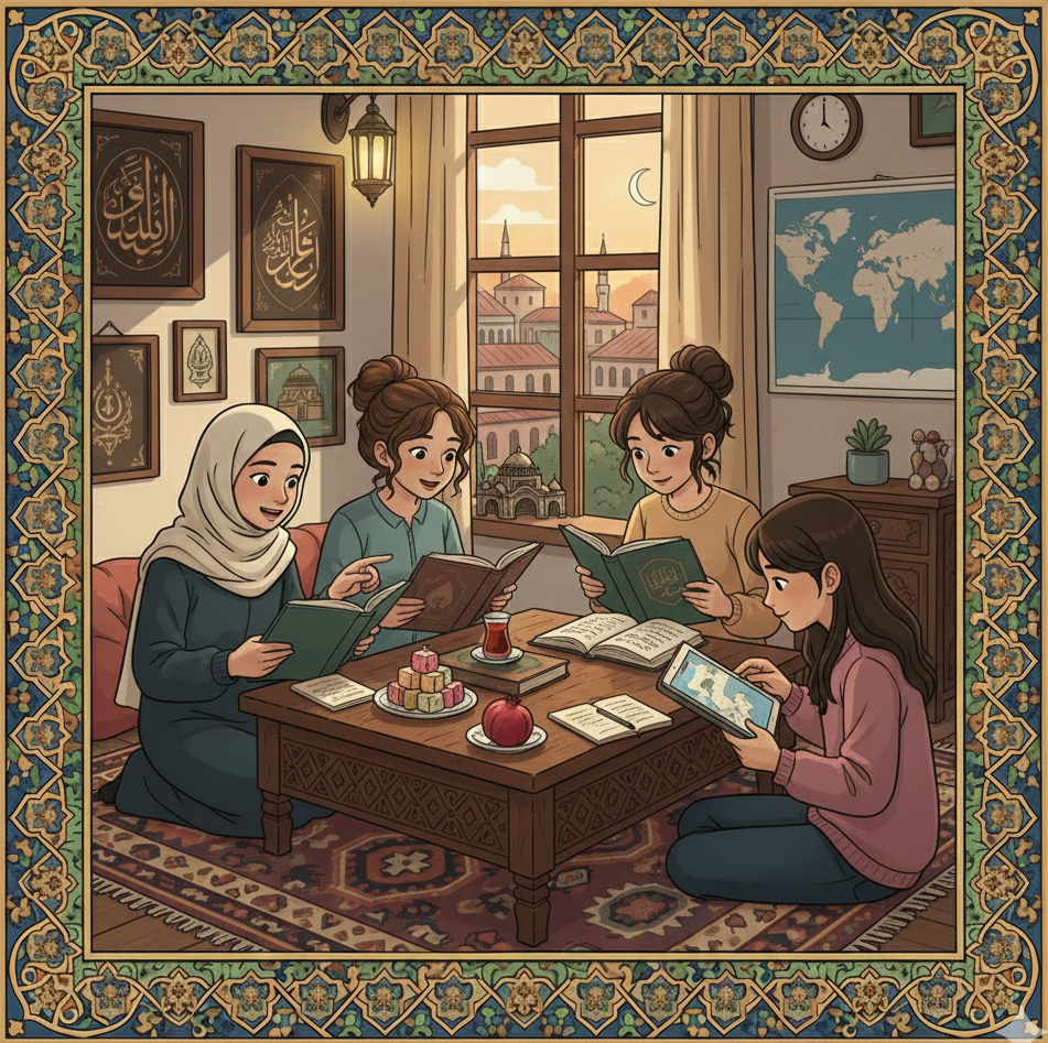 Günümüzde İslam tarihini okuyan genç kadınlar (Görsel yapay zekâ ile oluşturulmuştur).