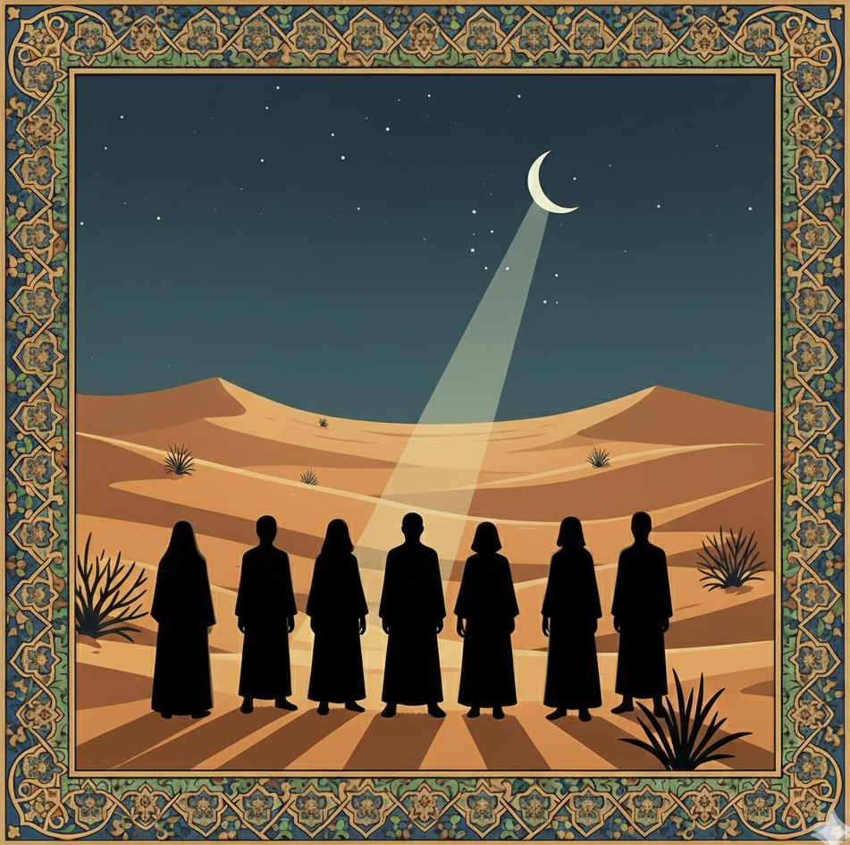 Mekke'de Müslümanlığını duyuran ilk 7 kişinin tasviri (Görsel yapay zekâ ile oluşturulmuştur).