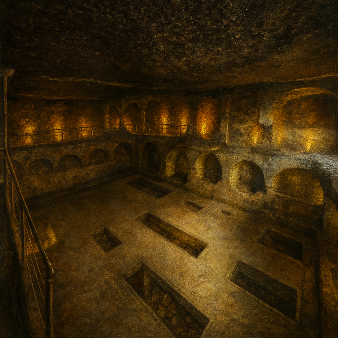 Kent, dört kilometre uzunluğunda surlarla çevriliydi. İçinde kiliseler, saraylar, çarşılar, zindanlar ve su bentleri bulunuyordu. Yeraltında dev sarnıçlar vardı; bu sarnıçlar hem su depolamak hem de kuşatma sırasında halkı korumak için kullanılıyordu. Kentin batısında ise kaya mezarları yer alır. Bu mezarlar, ana kayanın oyulmasıyla yapılmış ve günümüzde hâlâ etkileyici görünümünü korumaktadır.