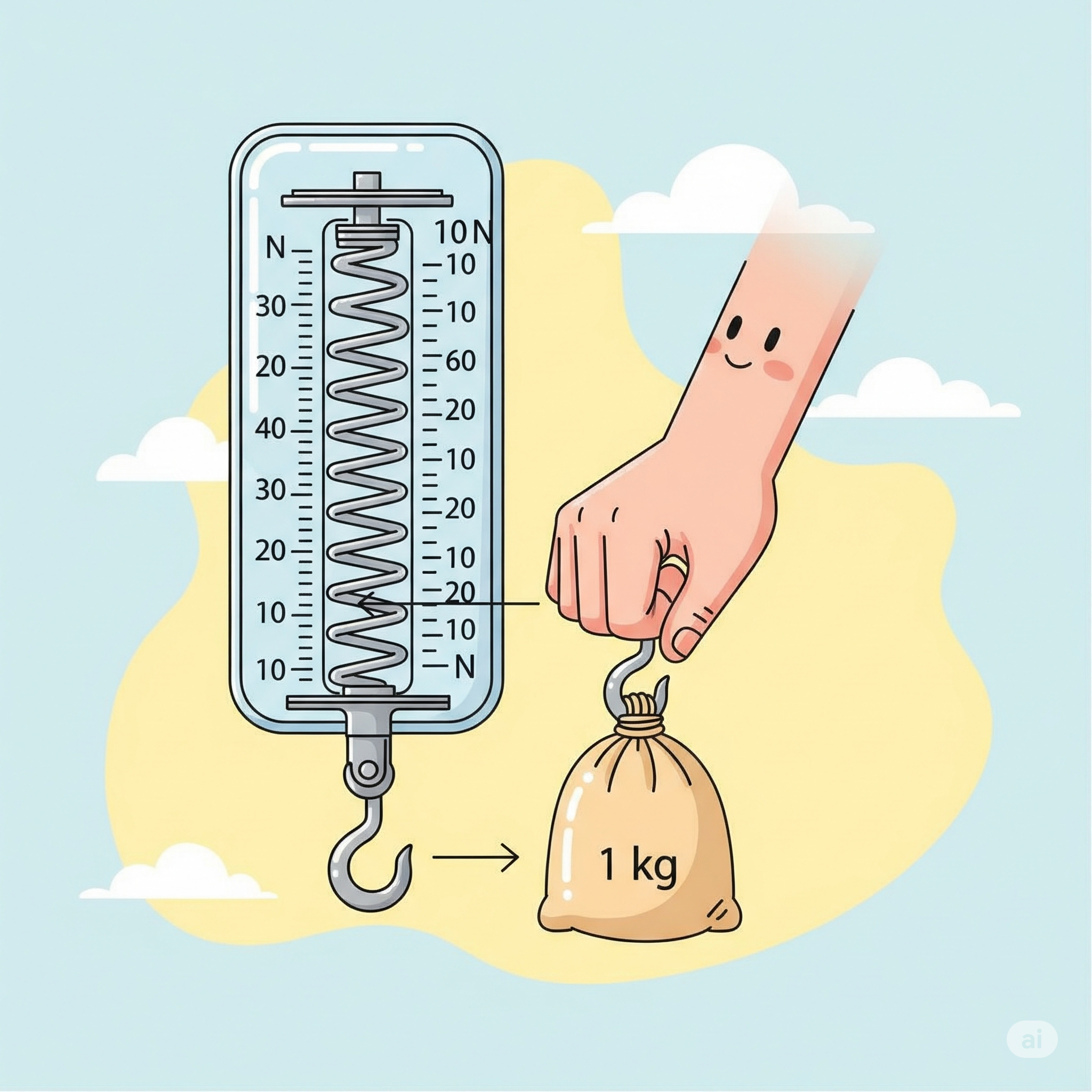 Örnek: 1 kg kütleli bir cisim Dünya üzerinde yaklaşık 10 N kuvvet uygular. Bu, dinamometrede 10 N olarak okunur.