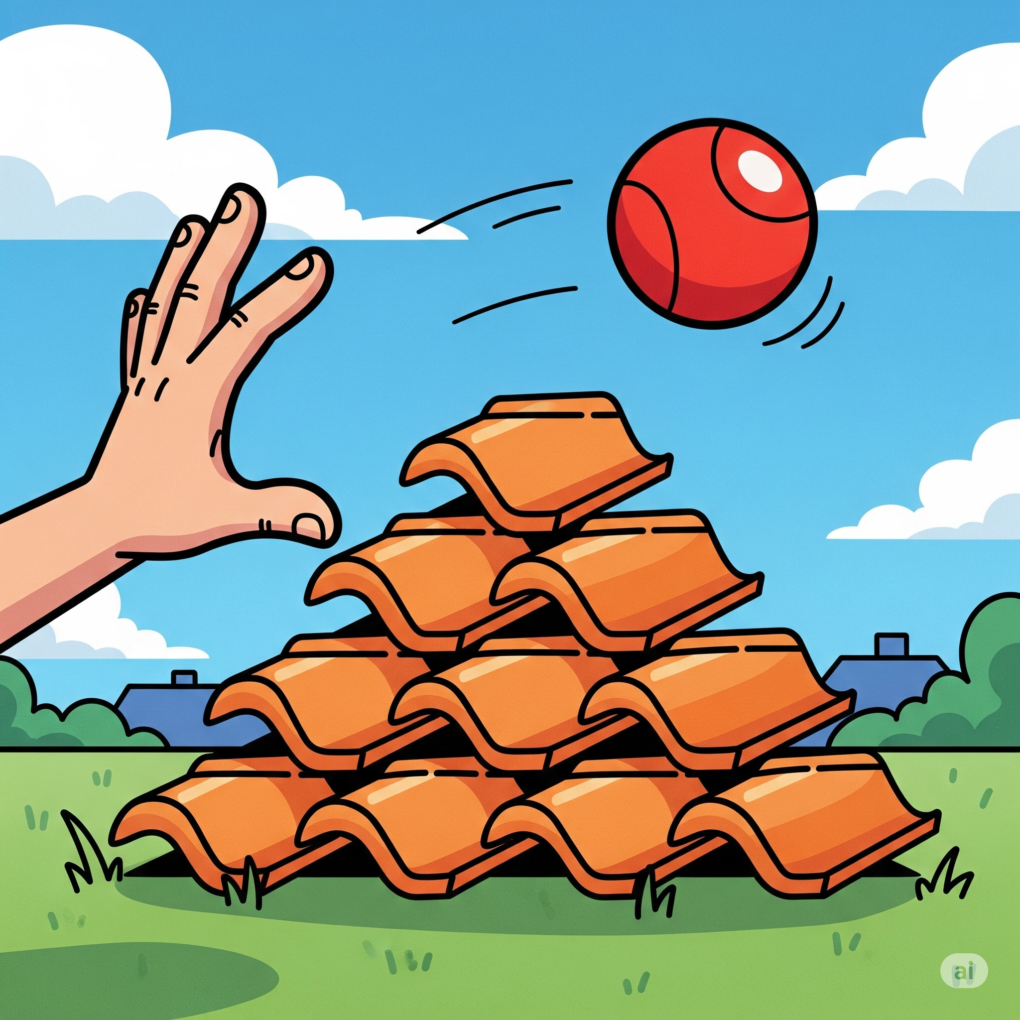 Kiremitler yıkıldığında oyun heyecanlı hale gelir: Dizici grup taşları yeniden dizmeye uğraşırken, diğer grup topu kapıp rakiplerini vurmaya çalışır. Eğer oyuncular toptan kaçarak bütün kiremitleri tekrar dizebilirse, o turu kazanmış olurlar.