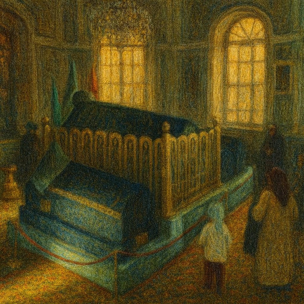 Sandukalar, parmaklıklarla çevrili bir bölümde düzenlidir; bu, hem koruma hem de saygı amaçlıdır.