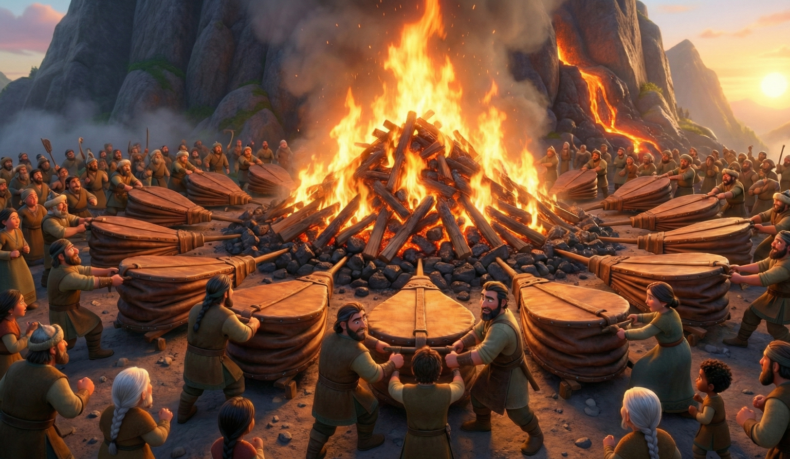Hazırlıklar tamamlandığında ateş yakıldı. Yüzlerce insan, körüklerin başına geçti. "Bir, iki, üç!" komutuyla hepsi aynı anda körüklere asıldı. 70 körükten çıkan hava, ateşi körükledi. Alevler gökyüzüne yükseldi. Bu sahne, "birlikten kuvvet doğar" sözünün en güzel örneğidir. Hiç kimse tek başına o dağı eritemezdi, ama herkes gücünü birleştirince imkansız mümkün oldu.