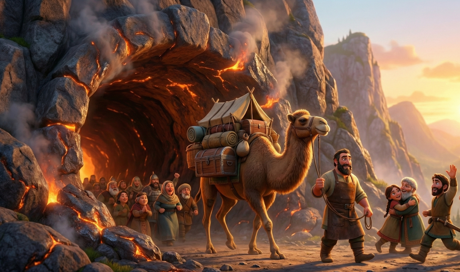 Uzun süren çabaların ve dökülen terlerin sonunda, beklenen an geldi. Dağın demir kısımları, yüksek sıcaklığa dayanamayarak erimeye başladı. Erimiş demirler nehir gibi akıp gittikçe, dağın içinde bir boşluk, bir tünel oluştu.