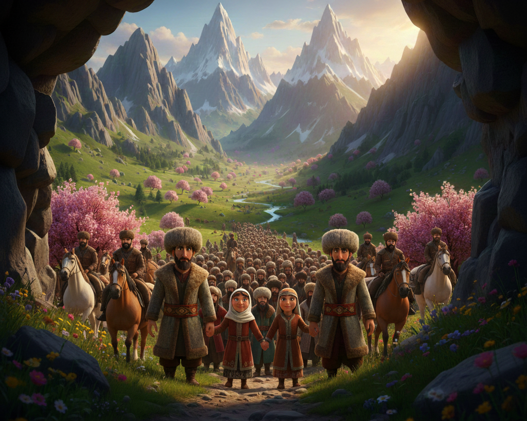 Ergenekondan çıkılan geçitin tasviri (Yapay zeka ile oluşturulmuştur.)