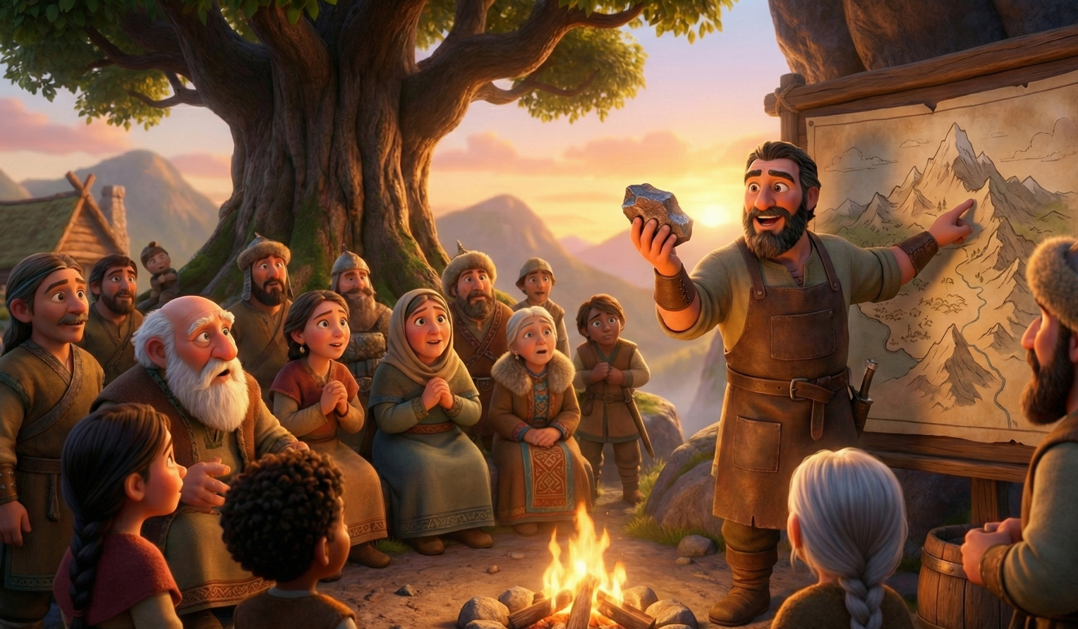 Toplumun içinde yaşayan ve mesleği demircilik olan bilge bir usta, dağlardan birini incelerken çok önemli bir detay fark etti. Bu dağın kayaları, diğerlerinden farklıydı. Usta, tecrübesiyle bu dağın aslında bir "demir madeni" olduğunu anladı.