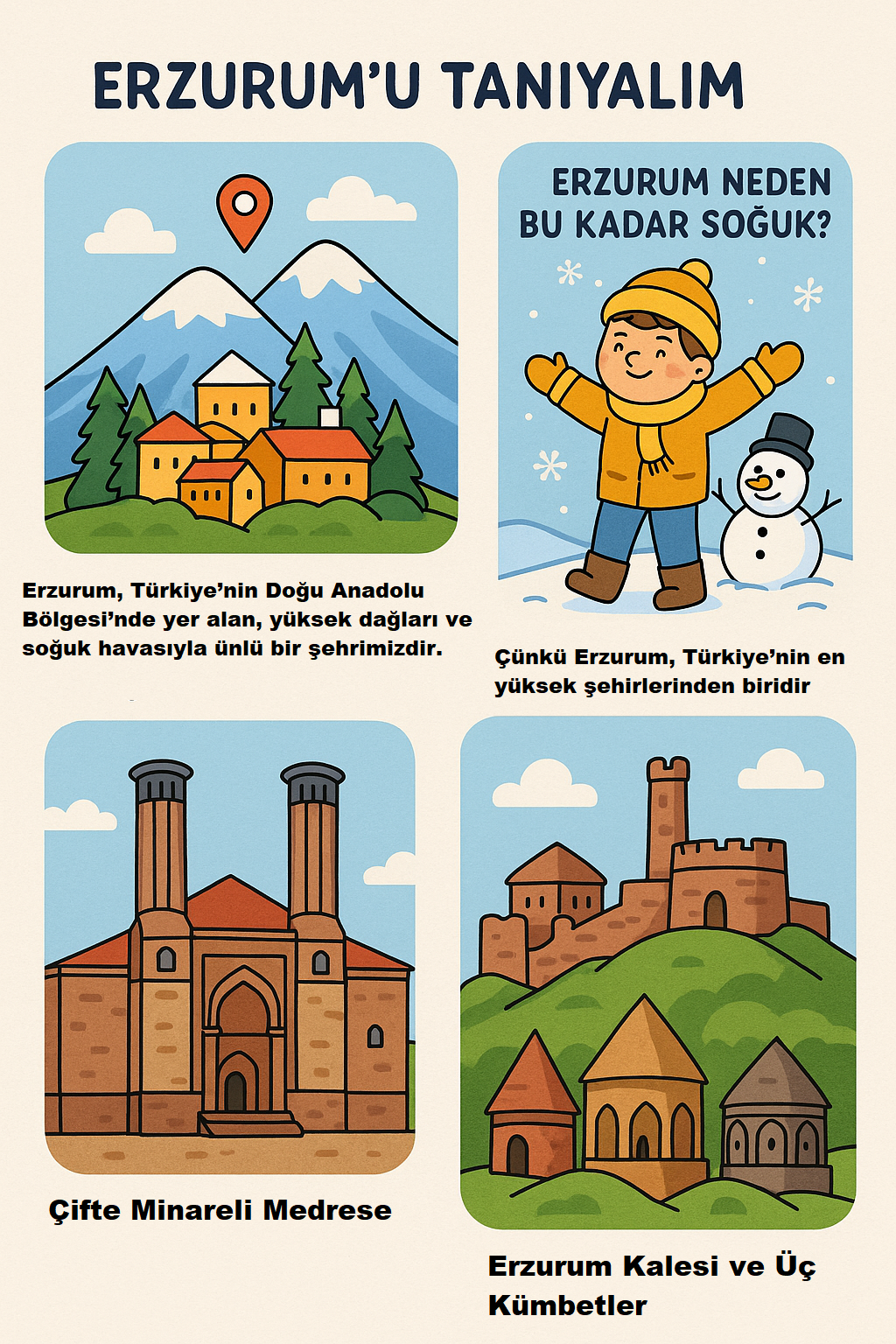 Çocuklar İçin Erzurum Tasviri (Yapay zekâ ile oluşturulmuştur.)