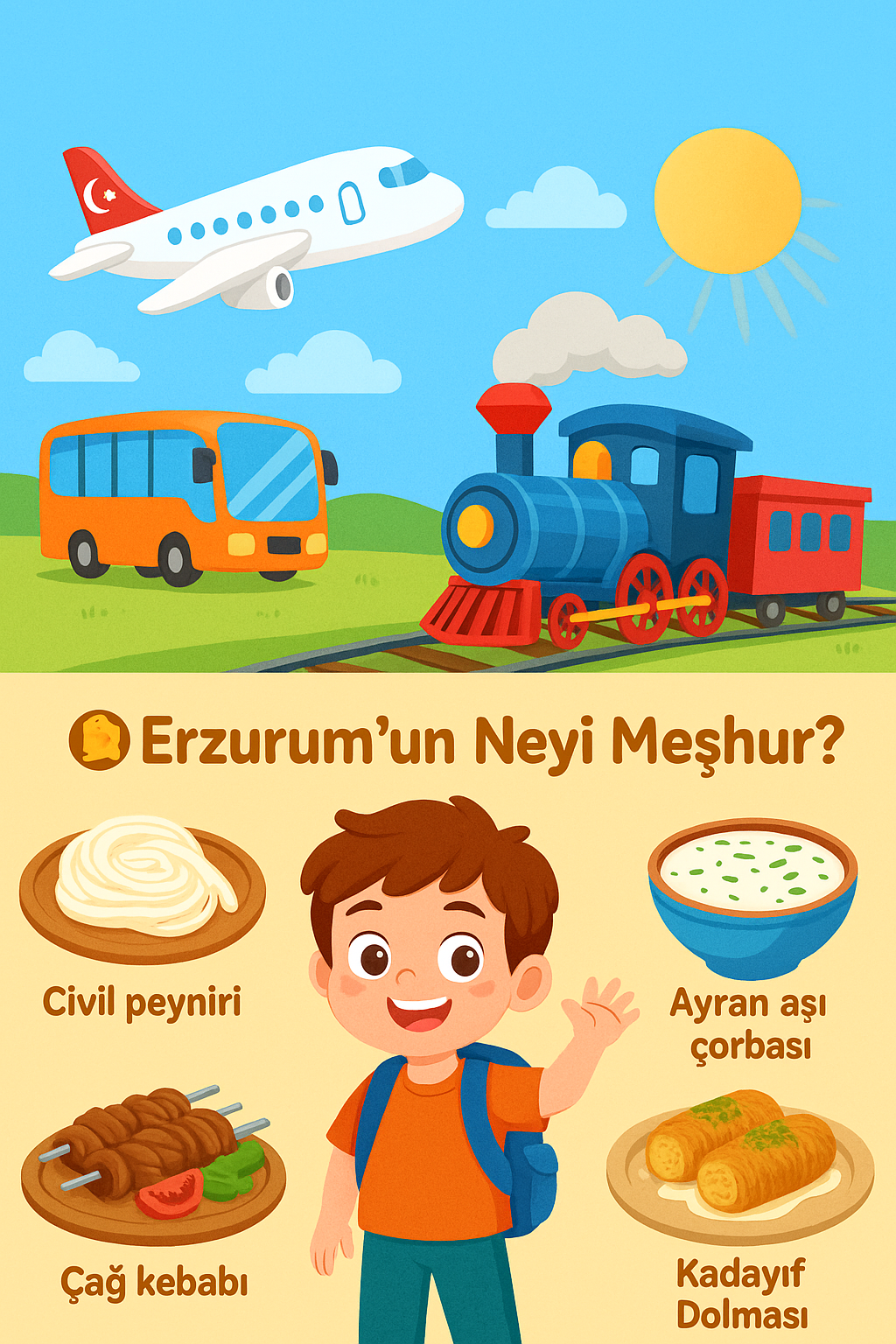 Erzurum’a uçakla, trenle ya da otobüsle gidebilirsin. Erzurum Havalimanı modern ve geniştir. Trenle gitmek ise manzaralı ve keyifli bir yolculuk sunar.