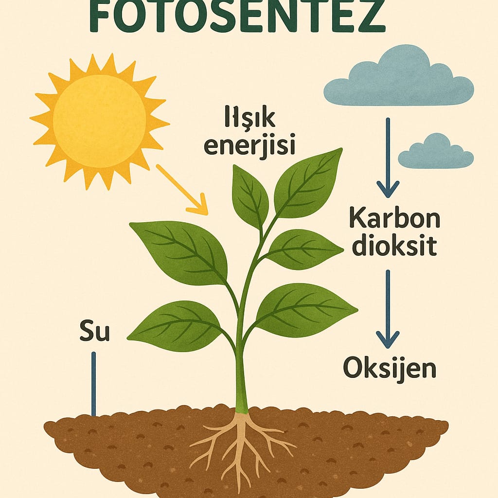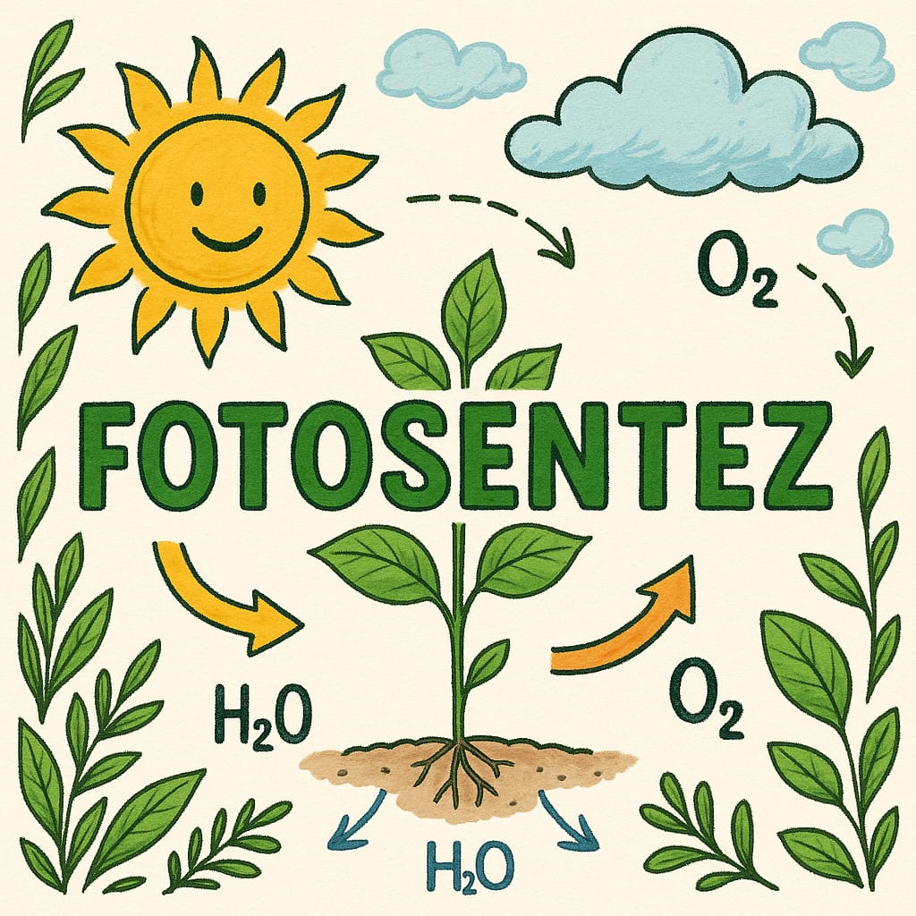 Fotosentez, bitkilerin, bazı alglerin ve bakterilerin, güneş ışığını kullanarak besin üretmesidir. Bu canlılar, havadaki karbondioksit (CO₂) ve topraktan aldıkları suyu (H₂O), güneş ışığı yardımıyla birleştirerek glikoz (şeker) ve oksijen (O₂) üretirler.